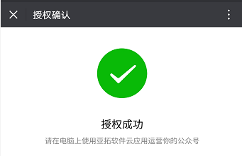 ????在手機(jī)微信上點(diǎn)擊“授權(quán)”后,會(huì)彈出一個(gè)授權(quán)成功界面。如下圖所示: