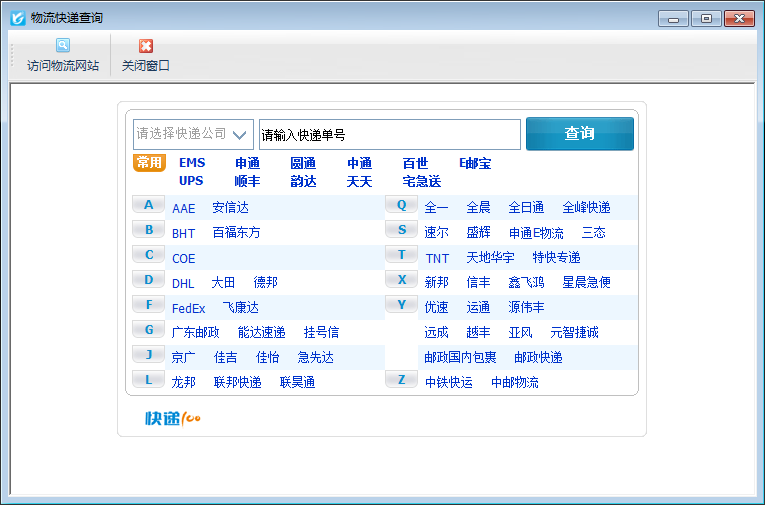 ????在功能導(dǎo)航窗點(diǎn)“擴(kuò)展應(yīng)用”—》“快遞查詢”即可進(jìn)入“物流快遞查詢”界面,如下圖所示: