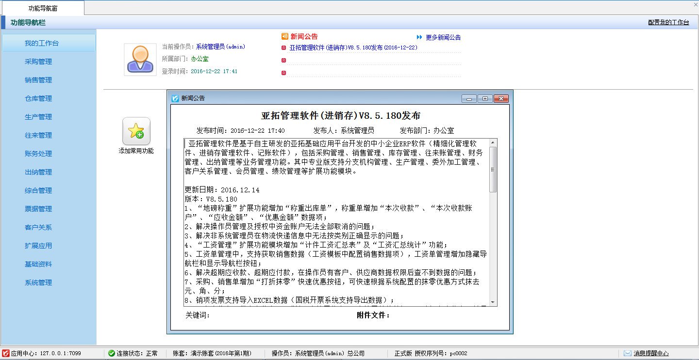 ????操作員登錄軟件后在“我的工作臺(tái)”—》“新聞公告”即可查看已經(jīng)發(fā)布過的新聞公告信息,如下圖所示。