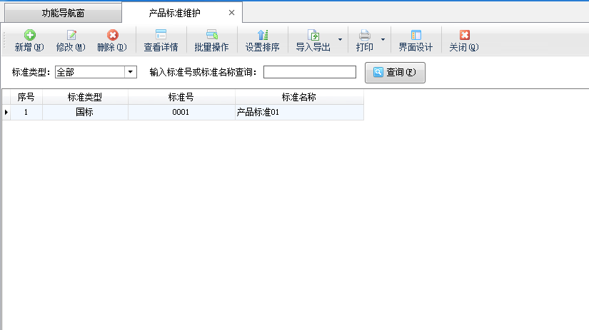 ????在功能導(dǎo)航窗點(diǎn)擊“擴(kuò)展應(yīng)用”—》“產(chǎn)品標(biāo)準(zhǔn)維護(hù)”可以打開產(chǎn)品標(biāo)準(zhǔn)維護(hù)界面,可以維護(hù)產(chǎn)品標(biāo)準(zhǔn)。