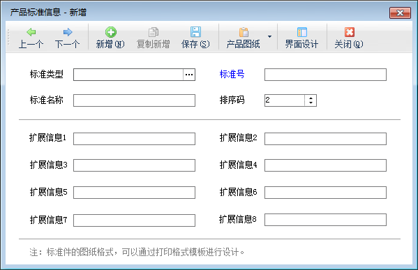 打印:在工具欄點(diǎn)“打印”—》“打印”可以快速打印產(chǎn)品標(biāo)準(zhǔn)列表;點(diǎn)“打印格式設(shè)計(jì)”可以打開“打印格式設(shè)置”窗口,可以新增、修改、刪除打印格式模板。