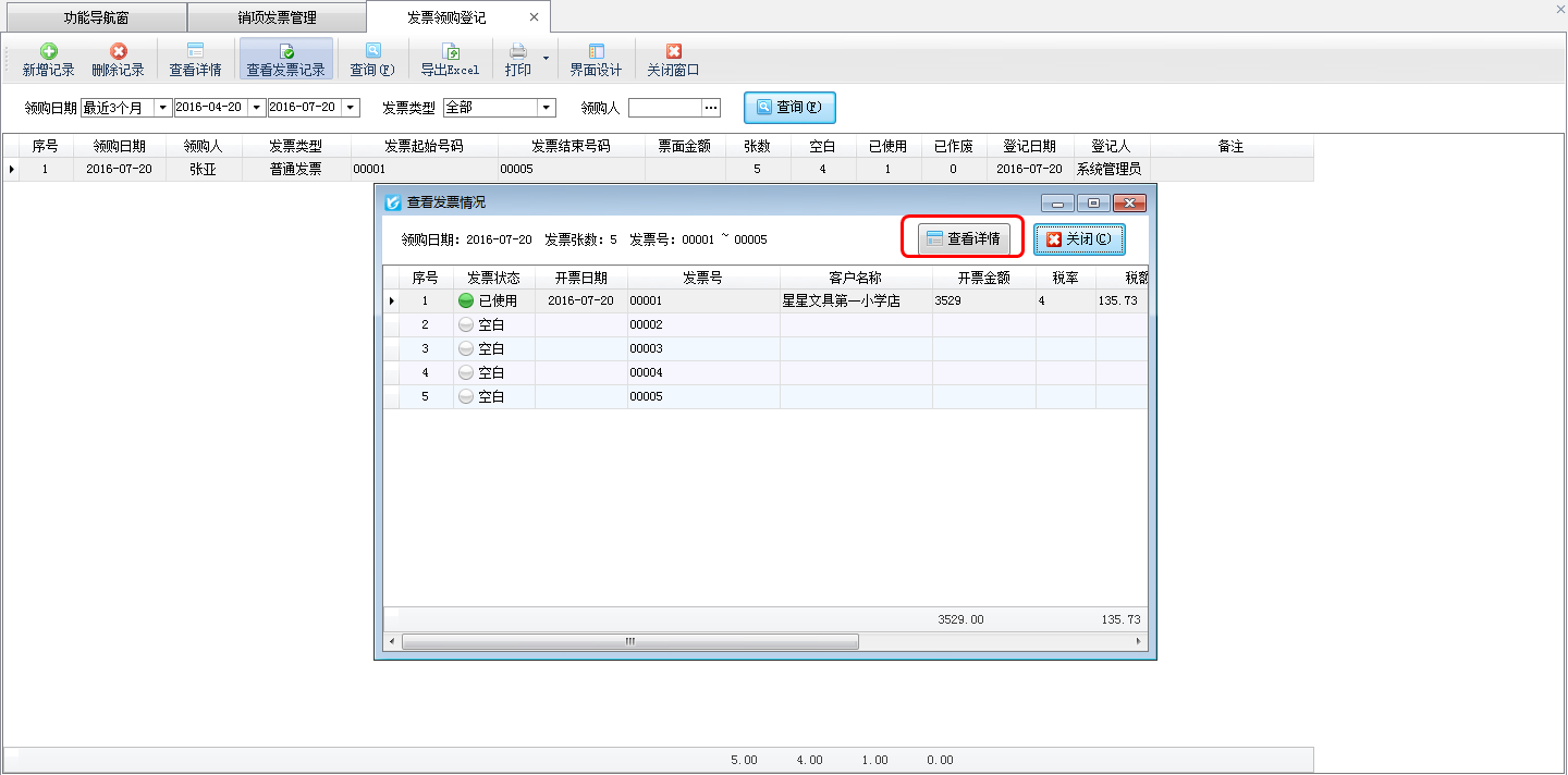 查看詳情:選中發(fā)票,點(diǎn)擊“查看詳情”按鈕,可以查看發(fā)票信息。