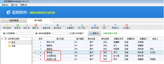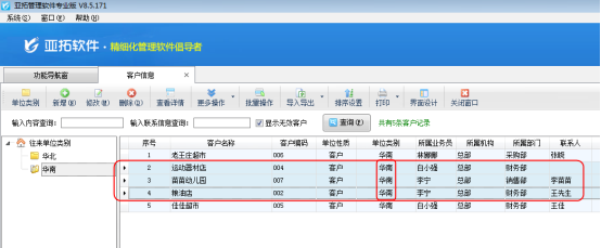亞拓管理軟件、紅管家倉(cāng)庫(kù)管理軟件、紅管家出納記賬軟件都包括對(duì)客戶(hù)信息和供應(yīng)商信息的管理,紅管家票據(jù)打印軟件和紅管家送貨單軟件也包括對(duì)客戶(hù)信息的管理。客戶(hù)信息集中管理和維護(hù)客戶(hù)資料,供應(yīng)商信息實(shí)現(xiàn)供應(yīng)商資料的維護(hù)。在軟件中如何快速批量修改客戶(hù)或供應(yīng)商單位類(lèi)別呢?下面我們以亞拓管理軟件專(zhuān)業(yè)版為例詳細(xì)介紹下如何批量修改客戶(hù)單位類(lèi)別。另外,批量修改供應(yīng)商單位類(lèi)別的方法基本一樣,在此不再贅述。