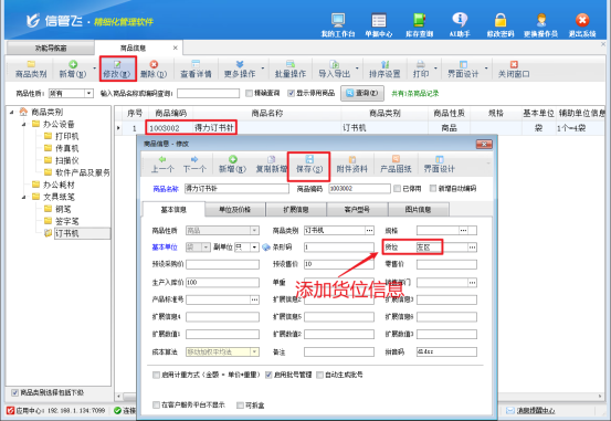 在“商品信息”界面中,您會(huì)看到一系列商品列表。找到您想要設(shè)置貨位的商品,選中該商品后,點(diǎn)擊界面上的“修改”按鈕。此時(shí),系統(tǒng)會(huì)彈出商品信息修改窗口,在這個(gè)窗口中,您可以找到專(zhuān)門(mén)用于錄入貨位信息的字段。將商品實(shí)際存儲(chǔ)的貨位準(zhǔn)確錄入后,點(diǎn)擊“保存”按鈕,該商品的貨位信息就設(shè)置成功了。